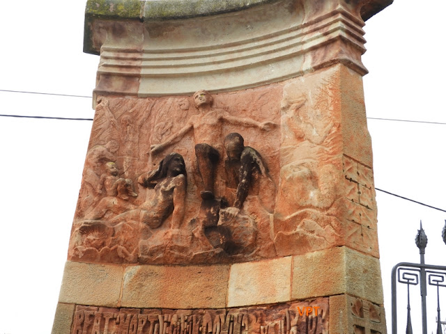 El otro pilar tiene unos altorelieves en cada lado que representan el entierro, el duelo y la resurrección. En la cara exterior, el entierro, consta también el nombre del arquitecto y el año de finalización, 1908, con la frase latina "Opera manum tuarum Domine ne despitias" (Las obras de tus manos, Señor, no las abandones).
